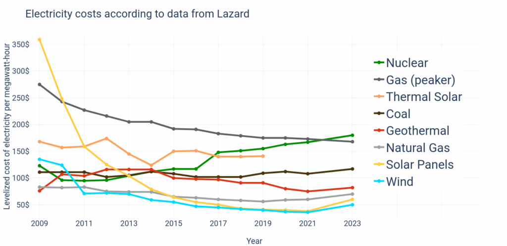 Les données montrent exactement le contraire. Selon l’Agence internationale de l’énergie (AIE), le coût de l’électricité solaire a chuté de 90% entre 2010 et 2022. L’éolien terrestre a baissé de 70% sur la même période.